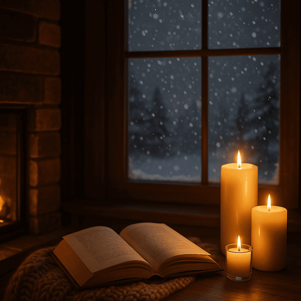 alt="Gemütliche Adventsstimmung am Fenster mit offenem Buch, Kerzenschein und verschneiter Winterlandschaft – perfekte Leseecke für Weihnachtsromane und gemütliche Lesestunden im Dezember." class="wp-image-2183"/>Warum wir Weihnachtsromane lieben
